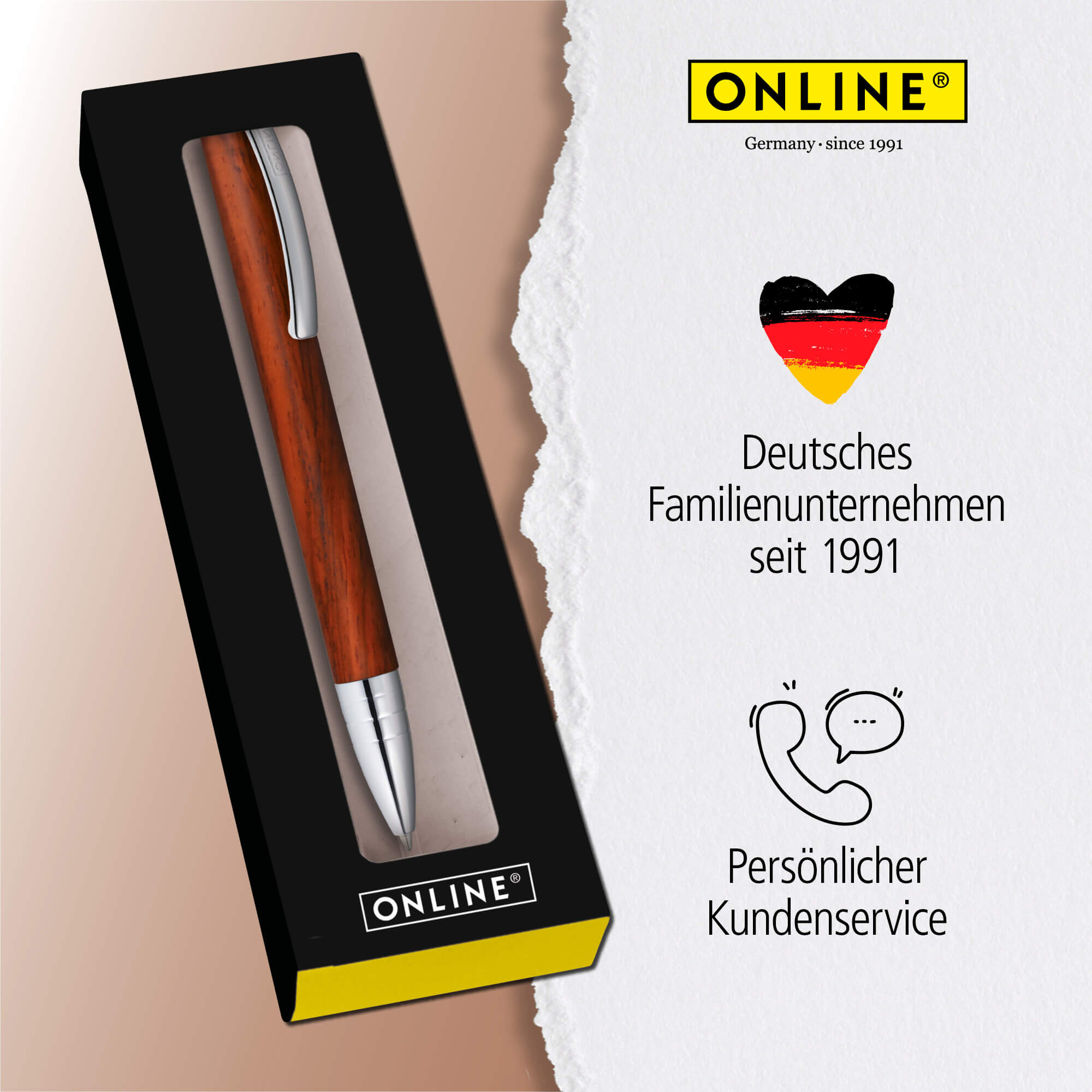 SCHLICHTE ELEGANZ: Der ONLINE Vision Kugelschreiber besticht durch sein hochwertiges, schlichtes Erscheinungsbild, seine sanfte Holz-Oberfläche und einen federgelagerten Metall-Clip – seriös und optimal für Uni, Büro oder den eigenen Schreibtisch.
