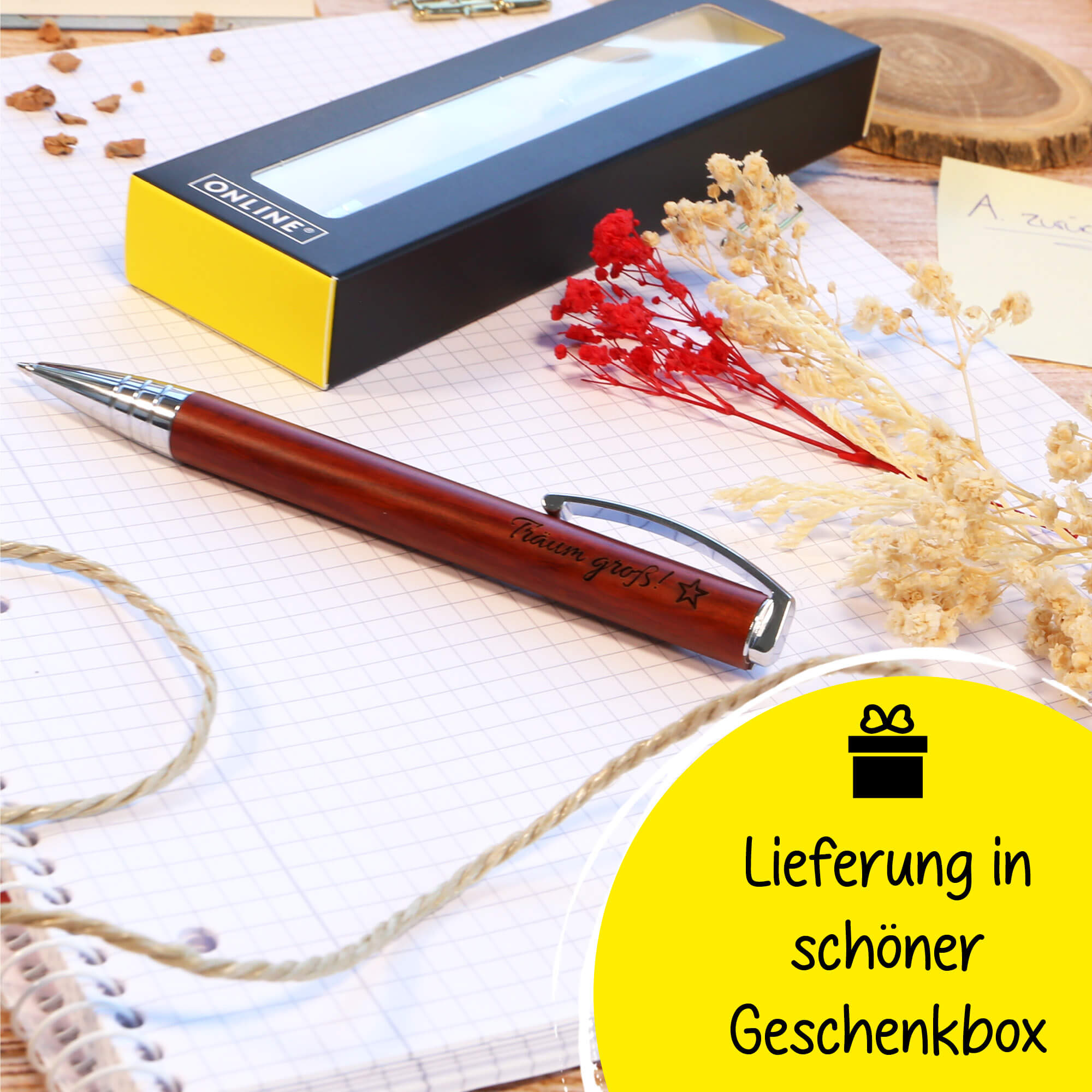 SCHLICHTE ELEGANZ: Der ONLINE Vision Kugelschreiber besticht durch sein hochwertiges, schlichtes Erscheinungsbild, seine sanfte Holz-Oberfläche und einen federgelagerten Metall-Clip – seriös und optimal für Uni, Büro oder den eigenen Schreibtisch.