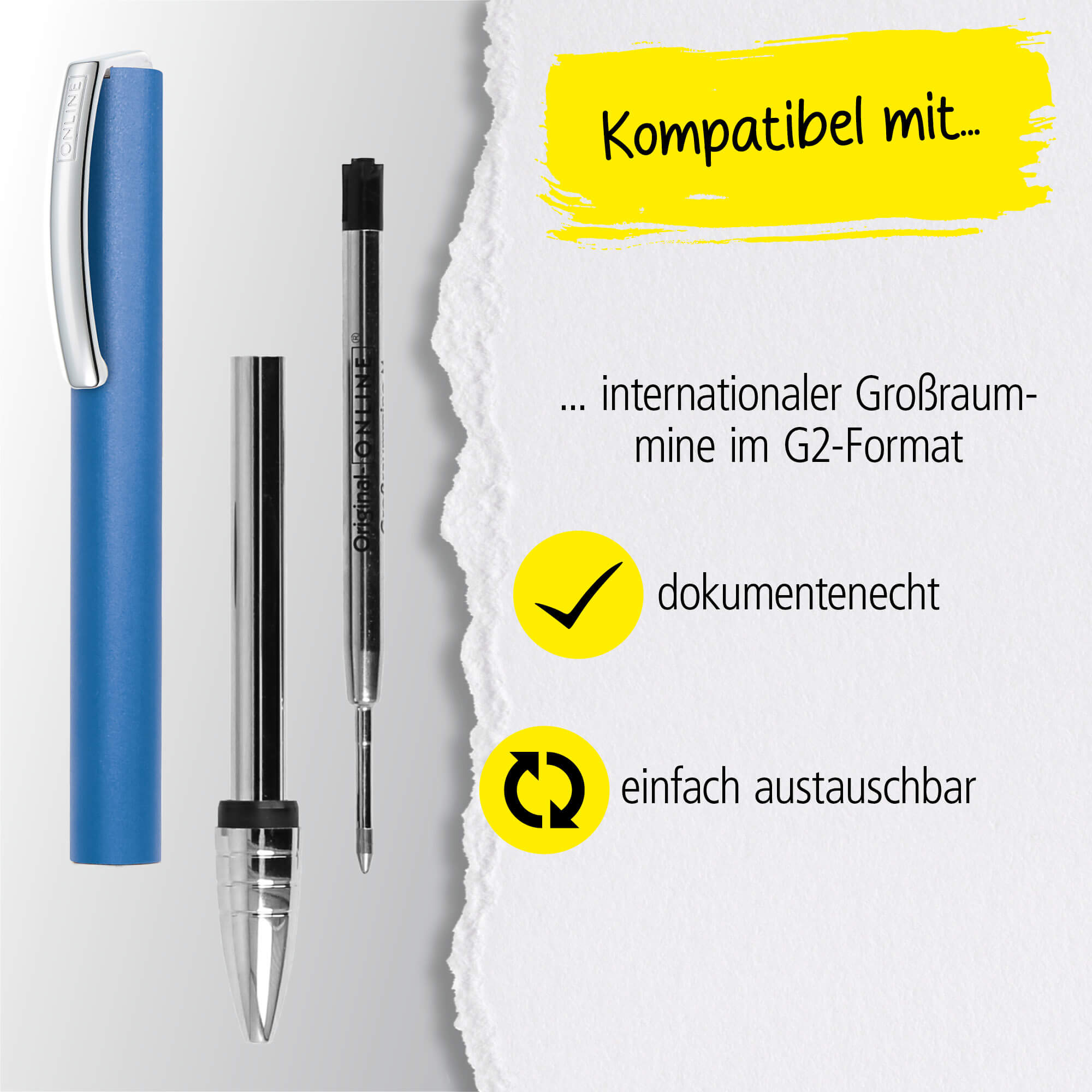 - HOCHWERTIGE MINE: Um einen leichten Austausch zu ermöglichen, ist der Drehkugelschreiber mit einer Großraummine im Standardformat G2 und Edelstahlspitze ausgestattet. Dokumentenecht in schwarz schreibend und in Strichstärke medium.