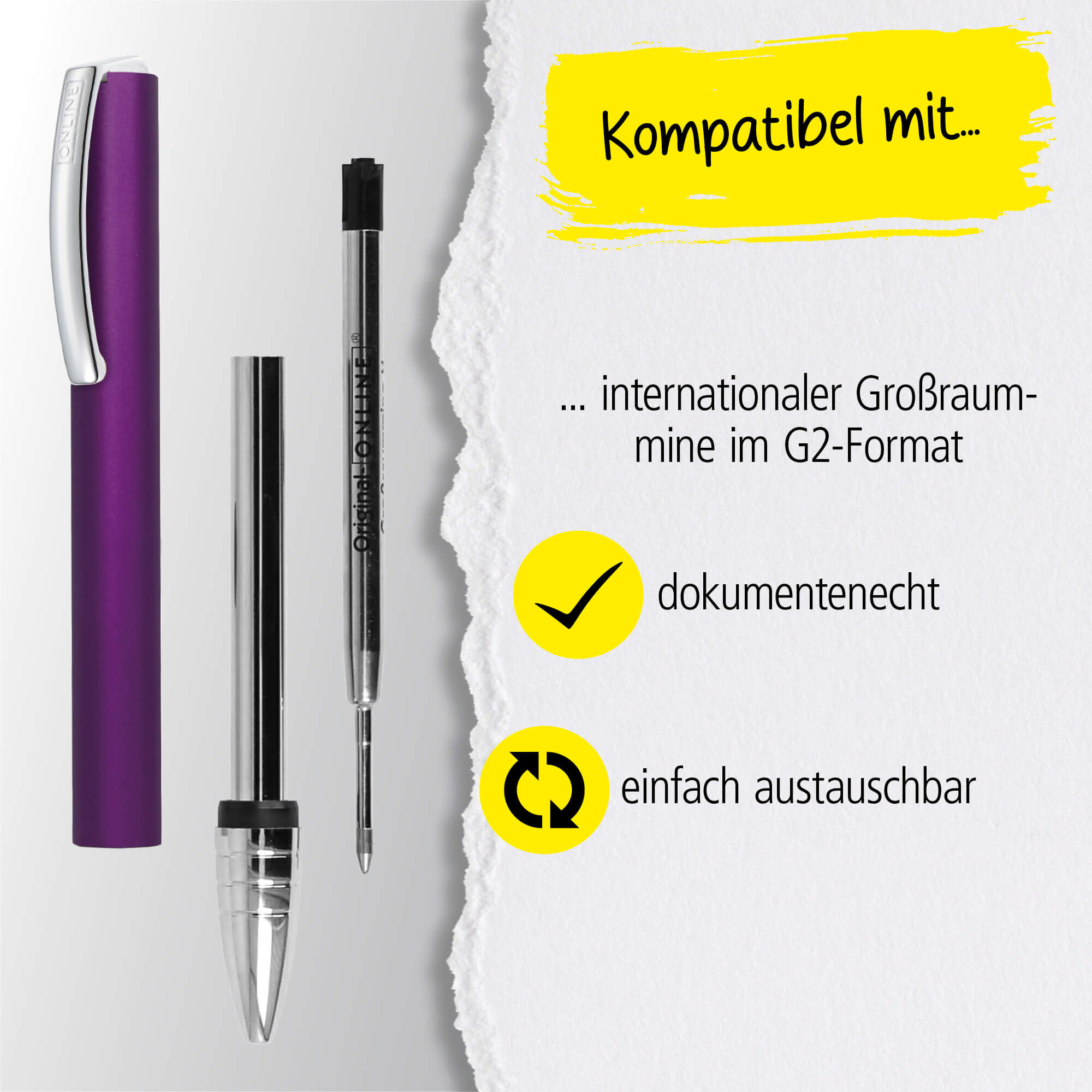 - HOCHWERTIGE MINE: Um einen leichten Austausch zu ermöglichen, ist der Drehkugelschreiber mit einer Großraummine im Standardformat G2 und Edelstahlspitze ausgestattet. Dokumentenecht in schwarz schreibend und in Strichstärke medium.