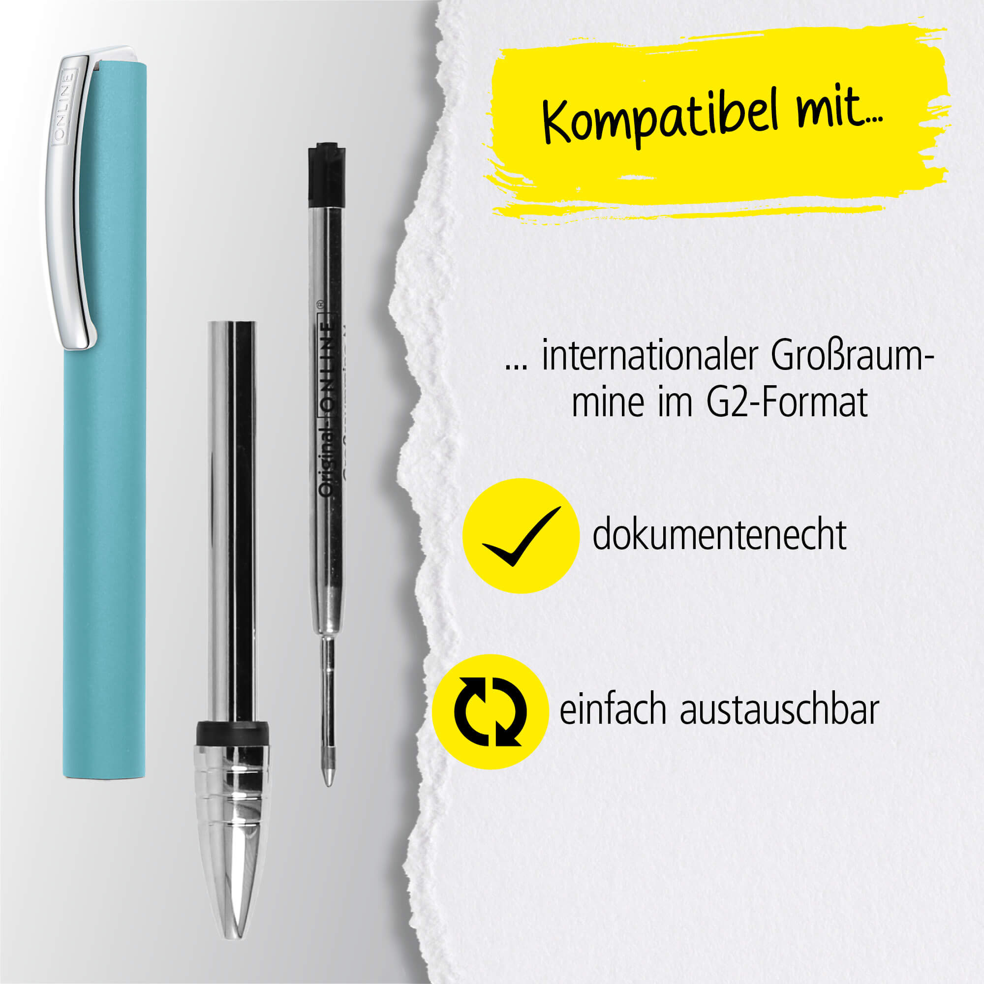 - HOCHWERTIGE MINE: Um einen leichten Austausch zu ermöglichen, ist der Drehkugelschreiber mit einer Großraummine im Standardformat G2 und Edelstahlspitze ausgestattet. Dokumentenecht in schwarz schreibend und in Strichstärke medium.