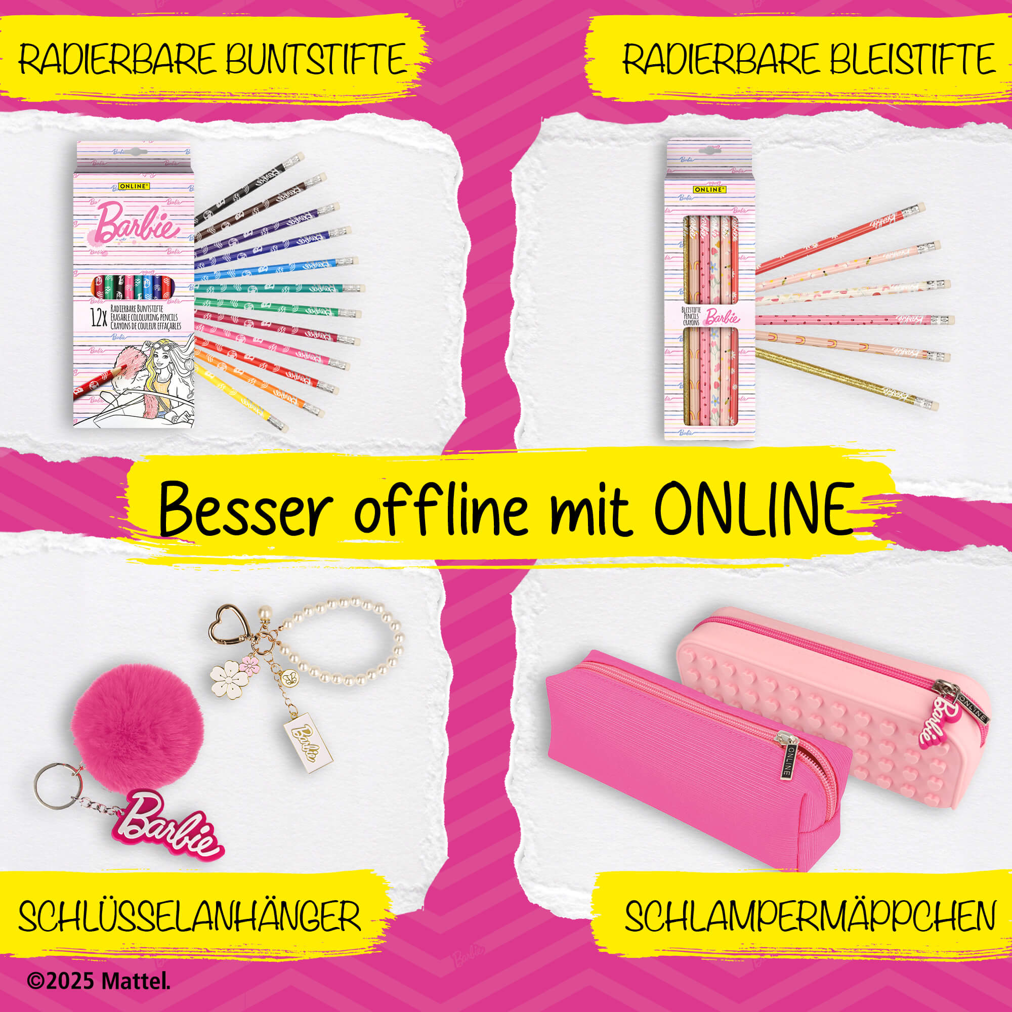 Dein neuer Lieblings-Radierer: Die Barbie Radiergummis von ONLINE bringen Glamour ins Federmäppchen. Gestaltet wie ein Lippenstift und mit Glitzerdeckel, sind sie ein echter Hingucker in jedem Schulranzen.