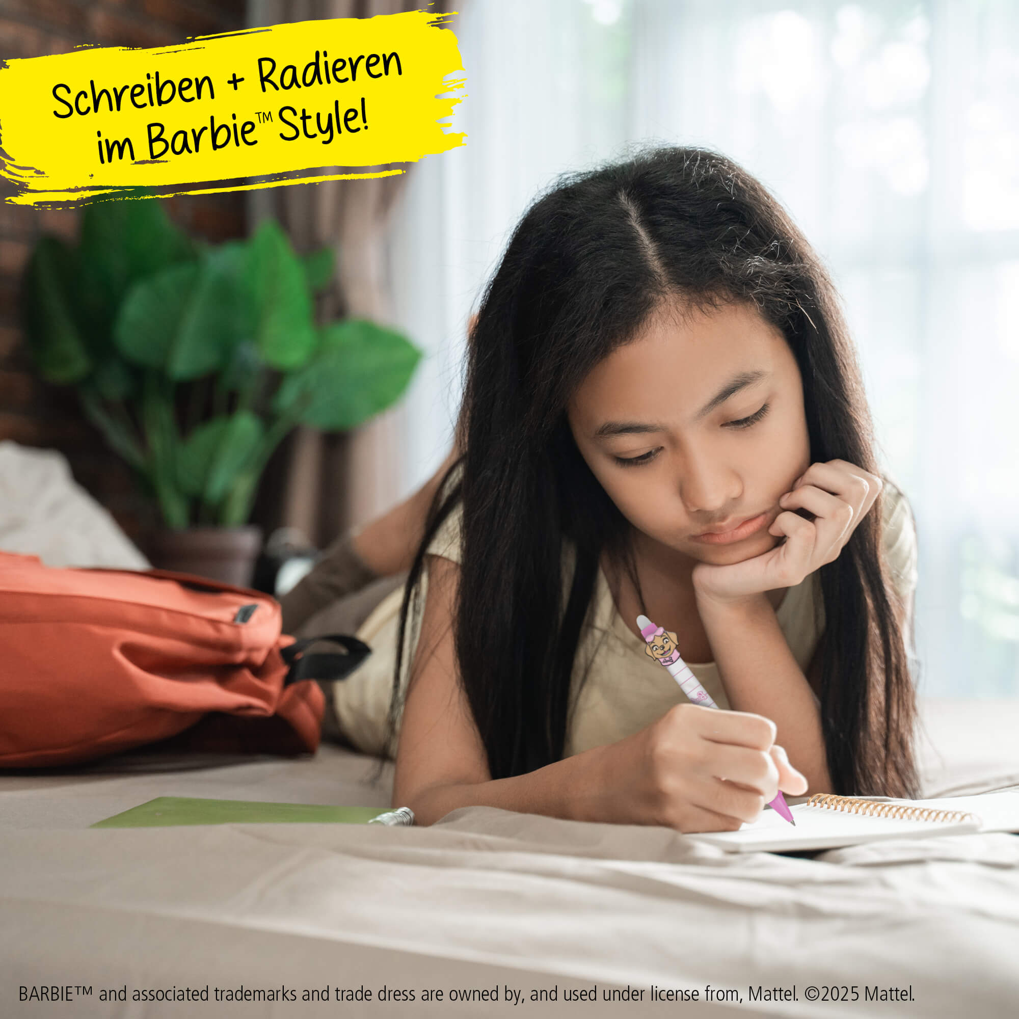 Must-Have für Barbie-Fans: Die Radierbaren Stifte in der Schreibfarbe Blau sind mit ihren stylisch-süßen Designs das Highlight in jedem Federmäppchen. Ein gelungenes Geschenk zur Einschulung, die Versetzung in die nächste Klasse oder zum Geburtstag.