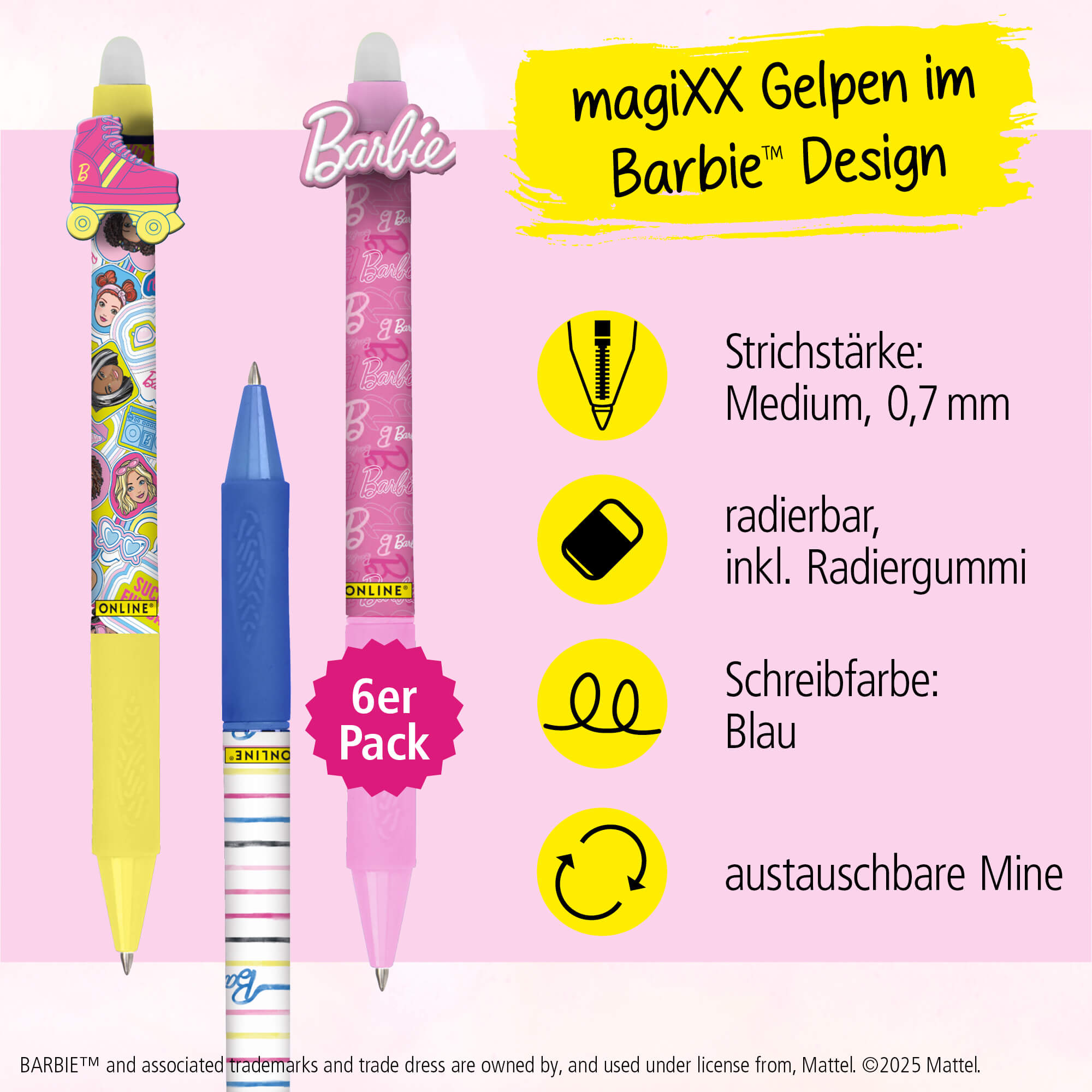 Radierbare Gelschreiber ONLINE magiXX Fun Barbie Edition, 6er-Pack, limitierte Kollektion